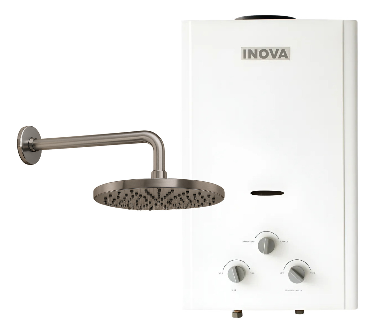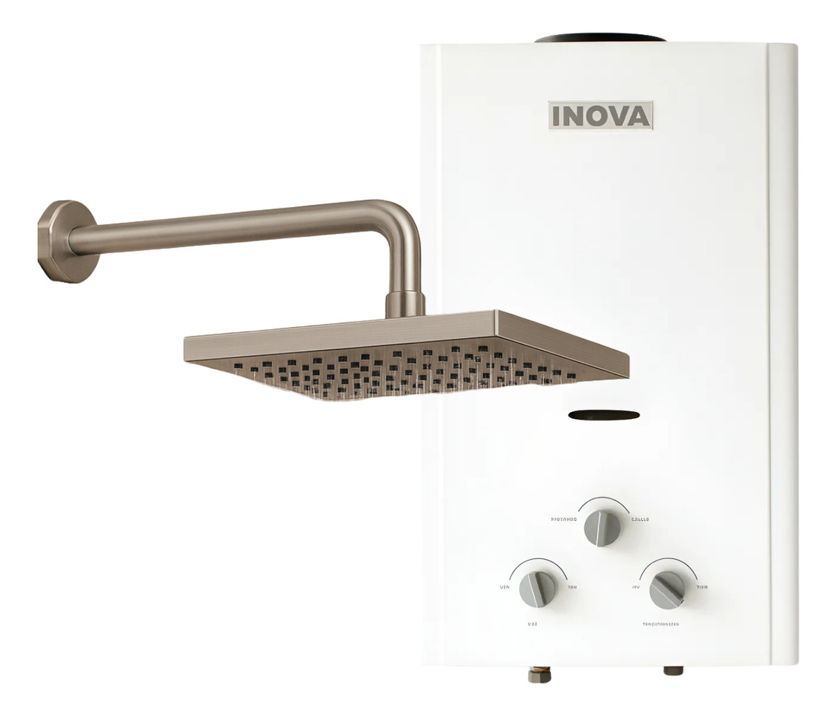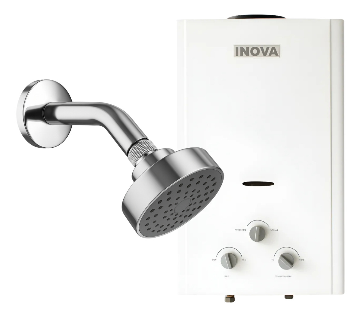 Kit Aquecedor De Água Gás 9 Litros GLP Inova Junker Mecânico Branco + Ducha Fit 9cm Cromada Água Quente/Fria