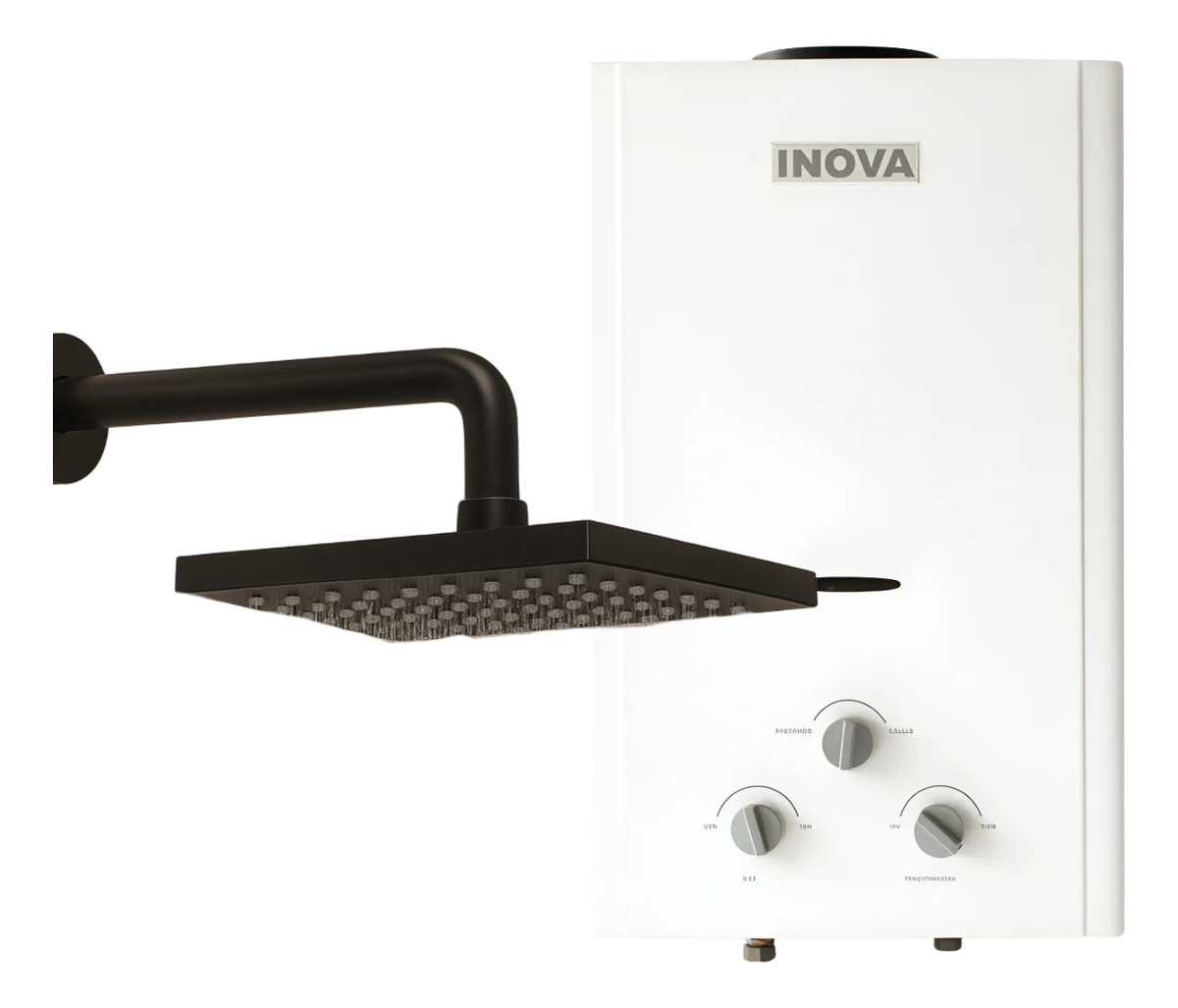 Kit Aquecedor Água A Gás GLP 9l Inova Mecânico Junker Branco + Ducha Quadrada Preta Fosca 20x20cm