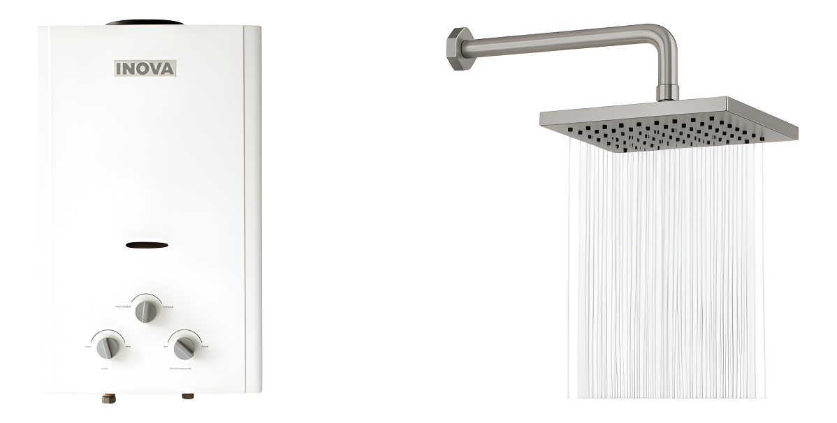 Kit Aquecimento Junker Inova Aquecedor Água Gás GLP 19 Litros + Ducha Cromada Água Quente E Fria 22cm