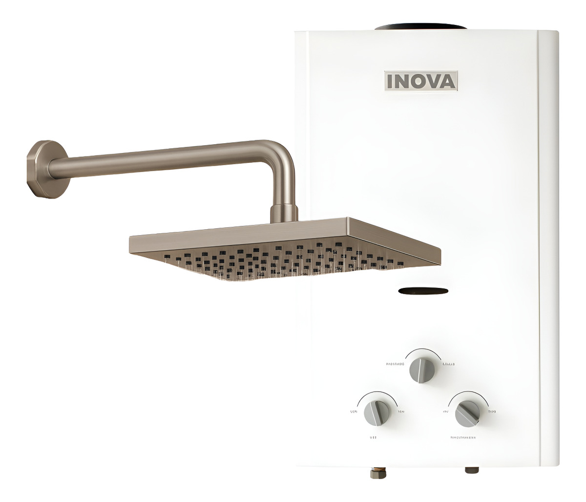 Kit Inova: Aquecedor De Água A Gás 19 Litros GLP Branco + Ducha Max Quadrada 20x20cm Cromada