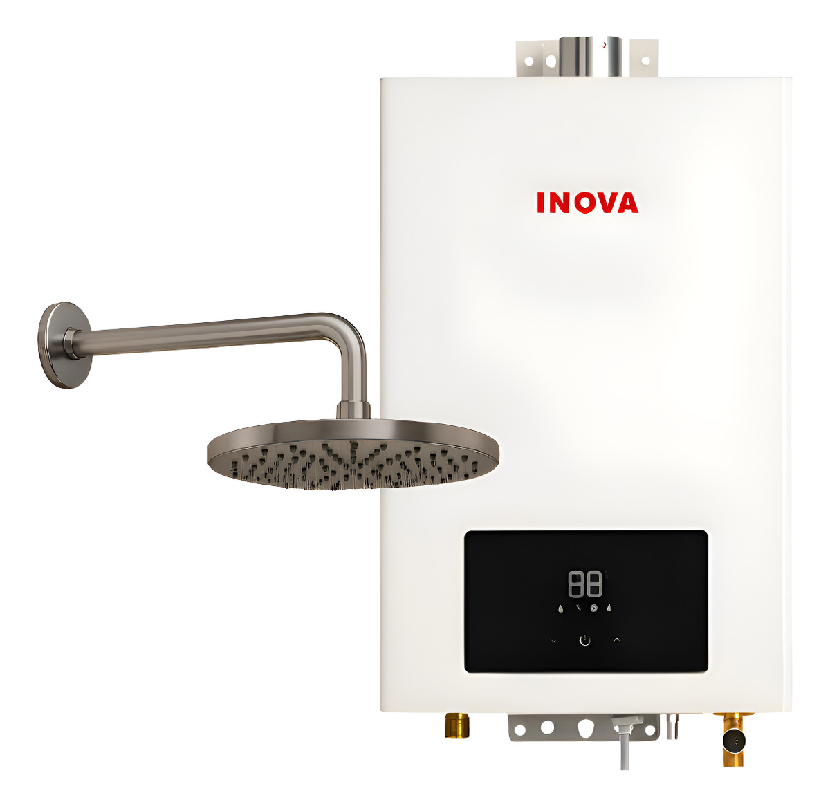 Kit Aquecedor Água A Gás Digital GLP Junker Inova Branco + Ducha Cromada Água Quente E Fria 22cm