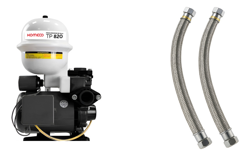 Kit Bomba Pressurizador Automatico Tp820 G3 Bivolt Komeco + 2 Engates Flexíveis 1 X 50cm Inox Instalação Hidraulica