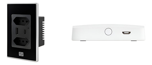 Kit Tomada Dupla Smart Zigbee Preto 10a + Hub Central Zigbee Controlador Alexa Casa Automatizada WEG Home Smart