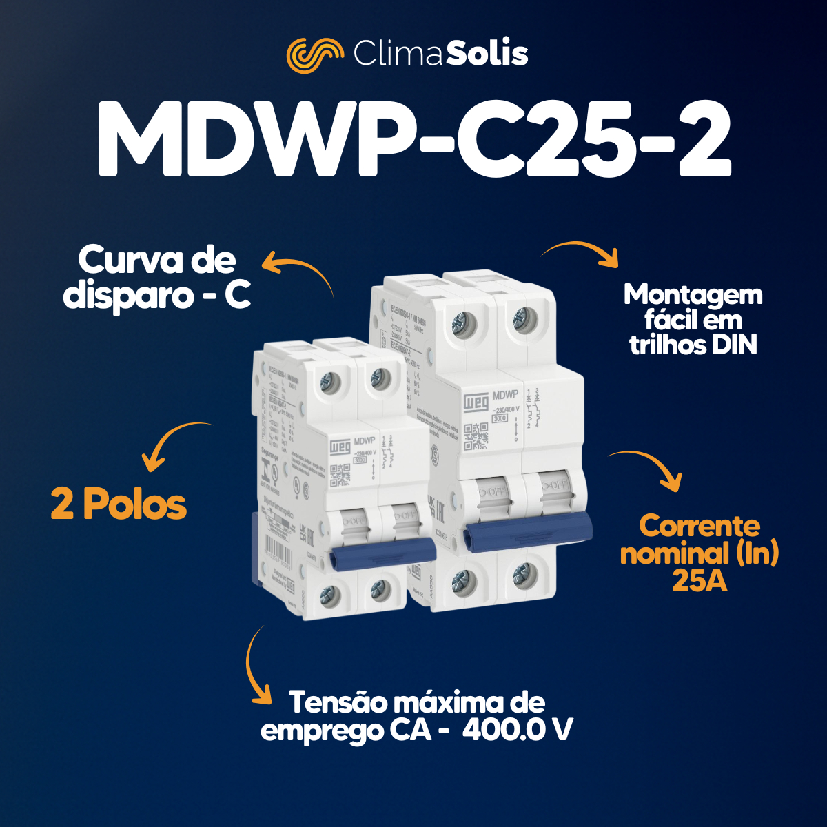 10 Disjuntor Bipolar Weg Mdwp 25a Curva C 15265725 Full