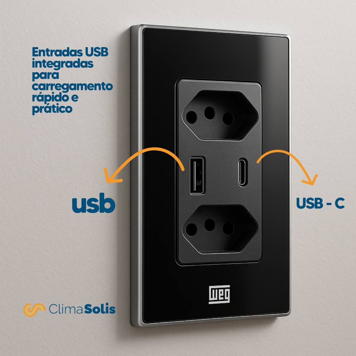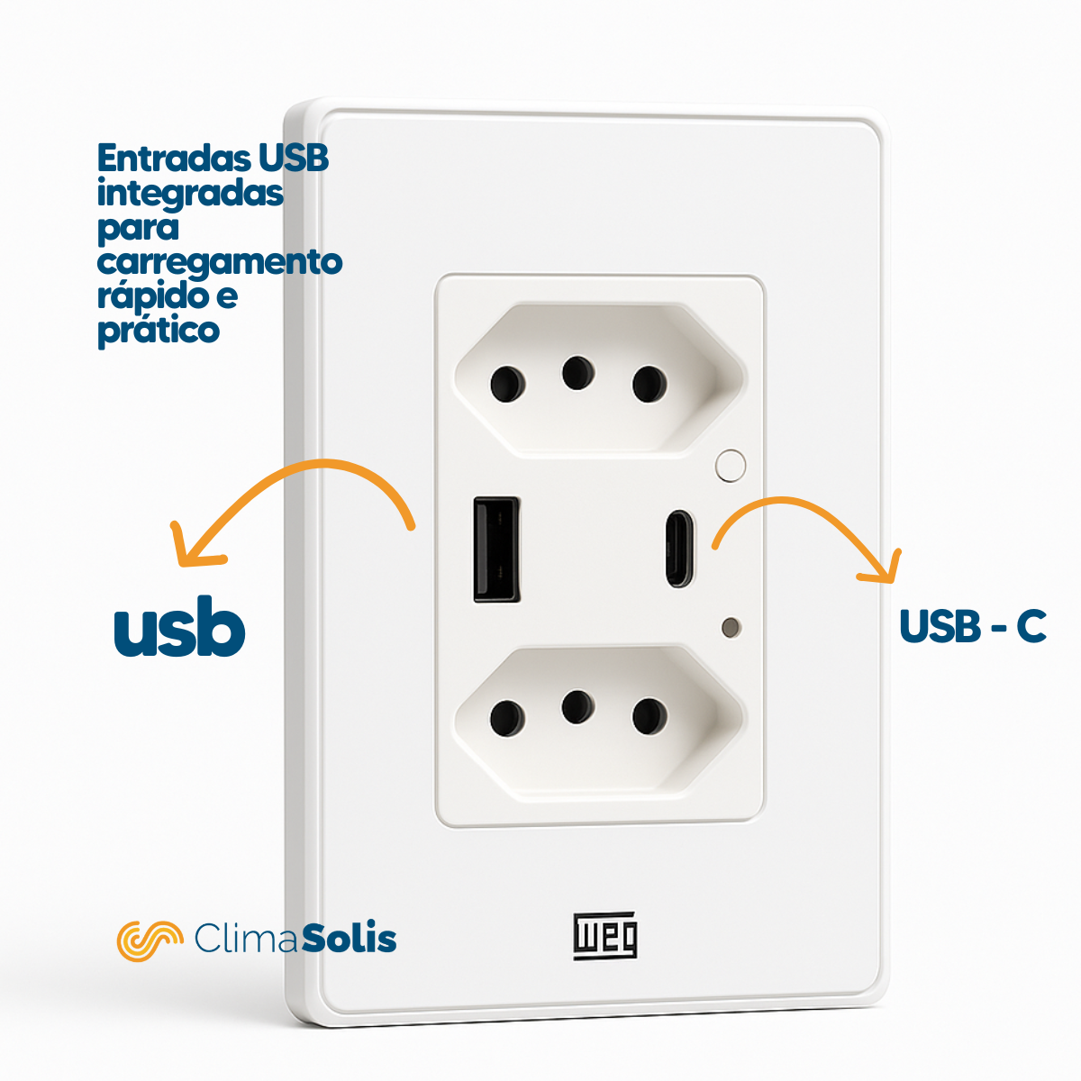 Tomada Dupla Wi-Fi WEG com Placa 4×2 – Automação Inteligente com Conexão Direta à Internet