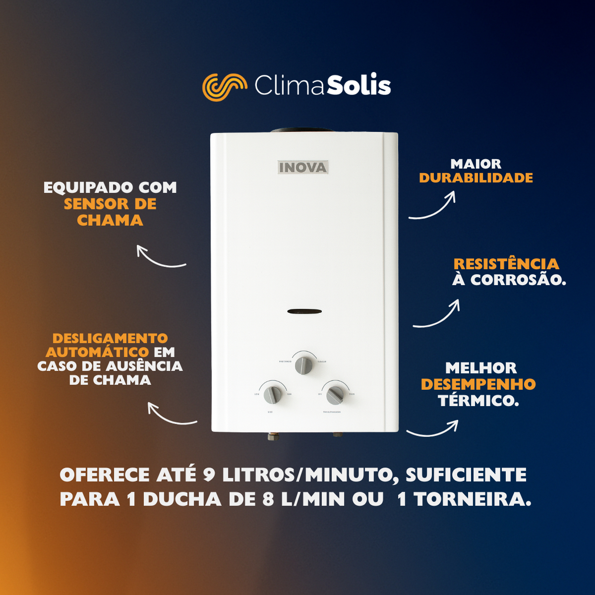O Aquecedor a Gás INOVA IN-1000 GLP foi desenvolvido para oferecer praticidade, segurança e conforto no aquecimento de água em residências. Compacto, eficiente e de fácil instalação, é a solução ideal para quem busca água quente em duchas e torneiras de forma econômica e contínua.