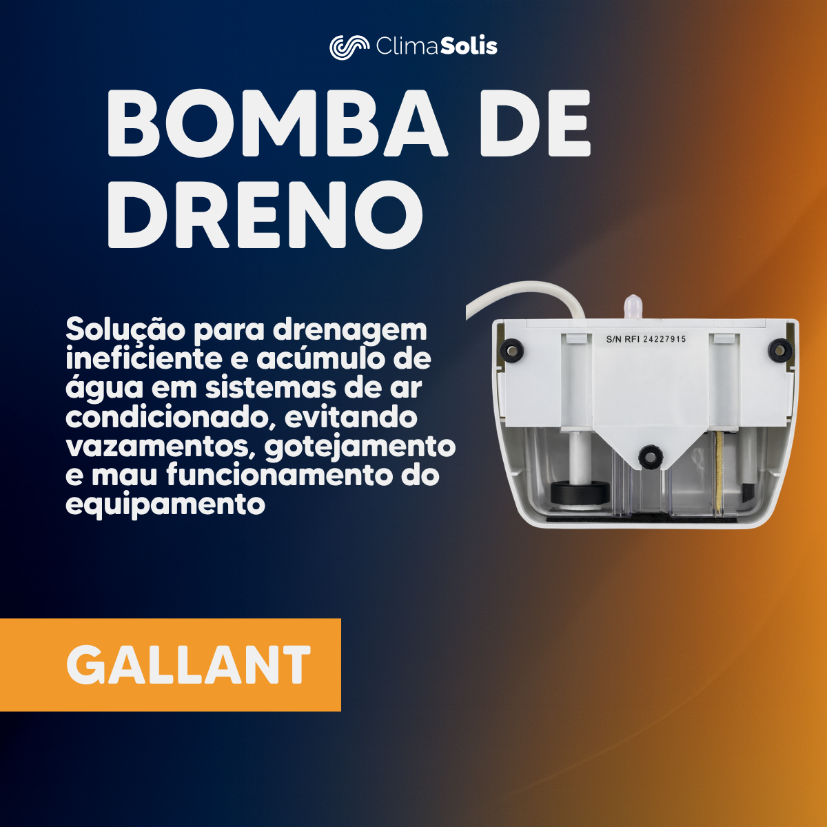 A bomba de drenagem Mute Wedge Gallant é a solução ideal para problemas de acúmulo de água e dificuldade de escoamento em sistemas de ar condicionado Split. Desenvolvida para remover a água condensada de forma eficiente, evita vazamentos, infiltrações e danos ao ambiente, garantindo o funcionamento correto do equipamento.