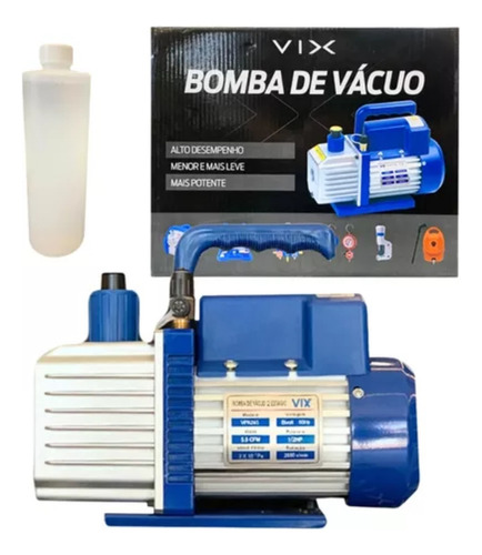 A Bomba de Vácuo 3,6 CFM de estágio único Vix é uma excelente escolha para sistemas de refrigeração e ar-condicionado. Inovadora e compacta, é extremamente potente. Sua função principal é evitar danos ao compressor e evaporadora, causados por gases e umidade presentes no sistema. A mistura de fluido refrigerante com água pode gerar um composto ácido capaz de oxidar as partes metálicas internas do sistema, obstruindo os capilares.