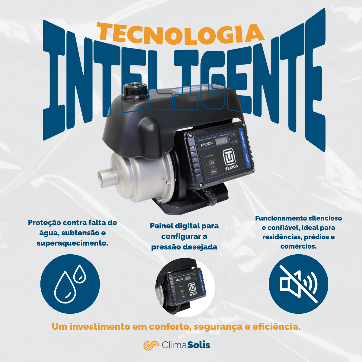 Com funcionamento inteligente, o Smart Pump mantém a pressão estável mesmo com vários pontos de consumo abertos ao mesmo tempo. Seu painel eletrônico possibilita ajuste simples da pressão e apresenta indicadores de falhas e funcionamento, transmitindo segurança ao usuário. Ele também oferece proteção contra falta d’água, subtensão, sobretensão, travamento e superaquecimento, aumentando a durabilidade e confiabilidade do sistema.