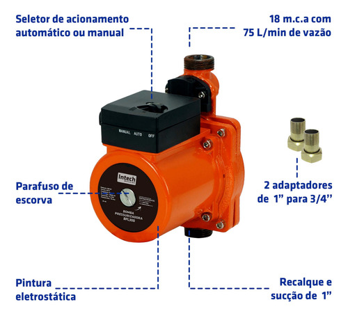 A Bomba Pressurizadora Intech Machine BFL300 é a solução prática e eficiente para aumentar a pressão de água em residências, estabelecimentos comerciais e pequenas indústrias.