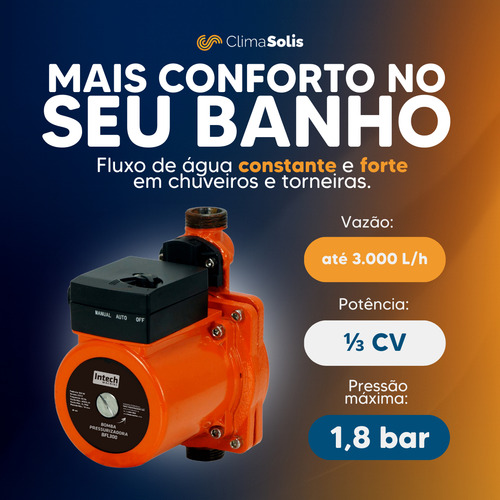 Com design robusto e motor de qualidade, a BFL300 combina tecnologia, durabilidade e baixo consumo de energia, proporcionando um funcionamento silencioso e seguro. É ideal para quem busca melhorar a distribuição de água em imóveis com baixa pressão ou em locais onde a vazão não é suficiente para atender a todos os pontos de consumo.