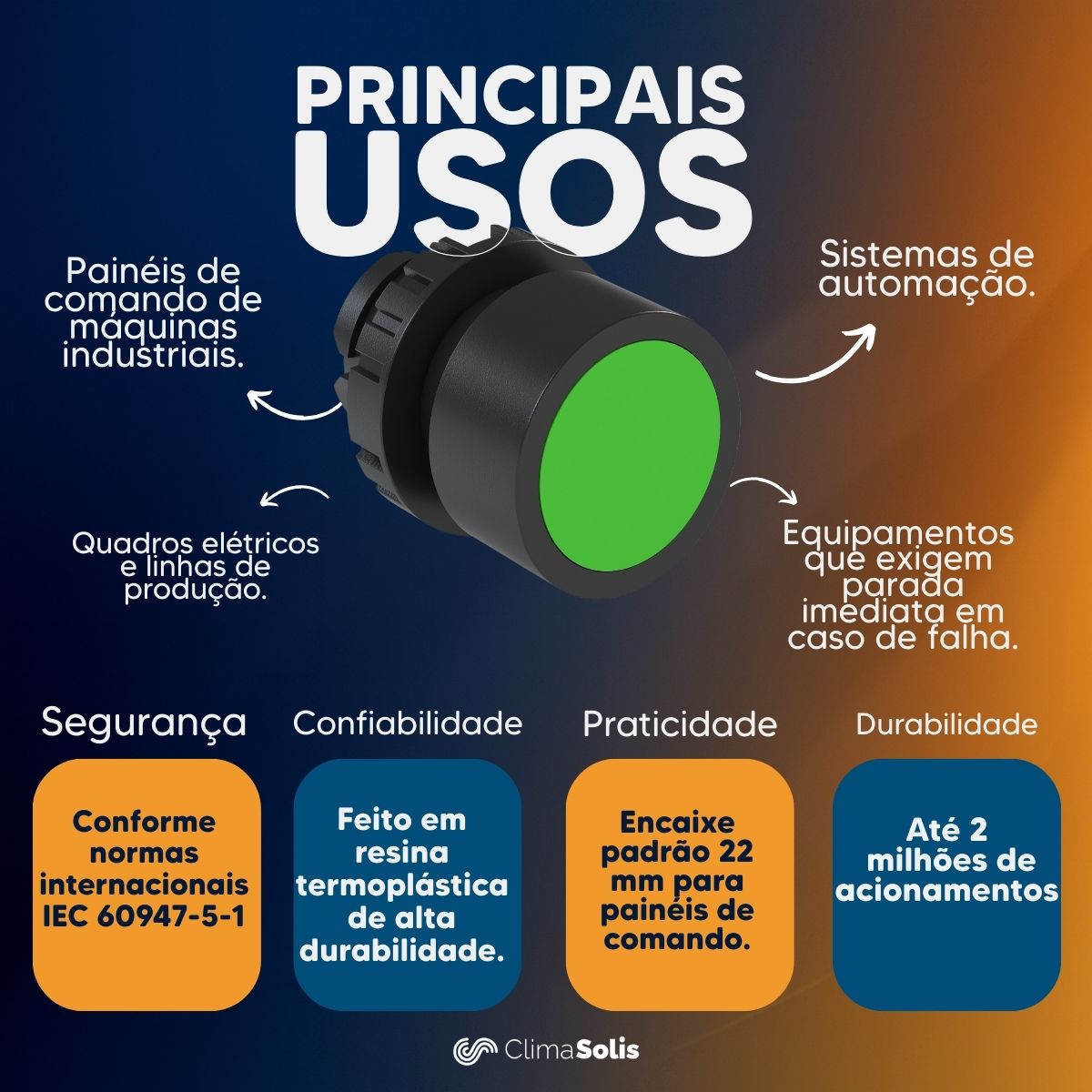 Indicado para uso em indústrias, painéis de comando, sistemas de automação, máquinas e equipamentos em geral, oferecendo maior confiabilidade no acionamento de funções de controle e sinalização.
