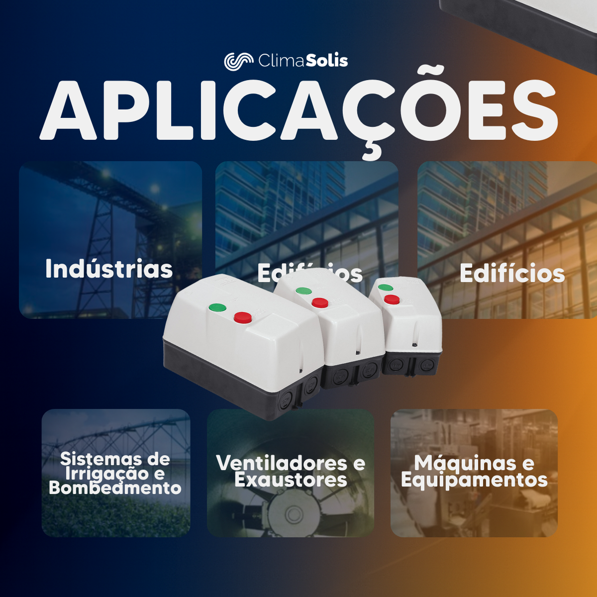 A Chave de Partida Direta WEG PDW02-1V25 é amplamente utilizada para o acionamento e proteção de motores elétricos trifásicos em diversas aplicações, como sistemas de irrigação, bombas d’água, ventiladores, exaustores, compressores, máquinas agrícolas e equipamentos industriais leves.