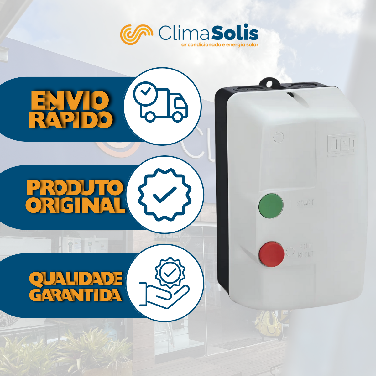 Produto original WEG com garantia de fábrica contra defeitos de fabricação, desde que instalado conforme o manual técnico e por profissional qualificado.