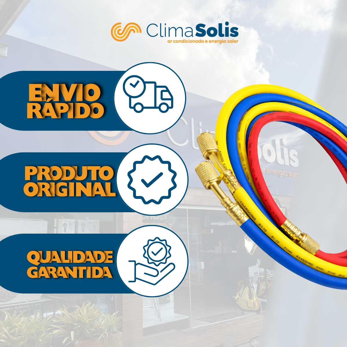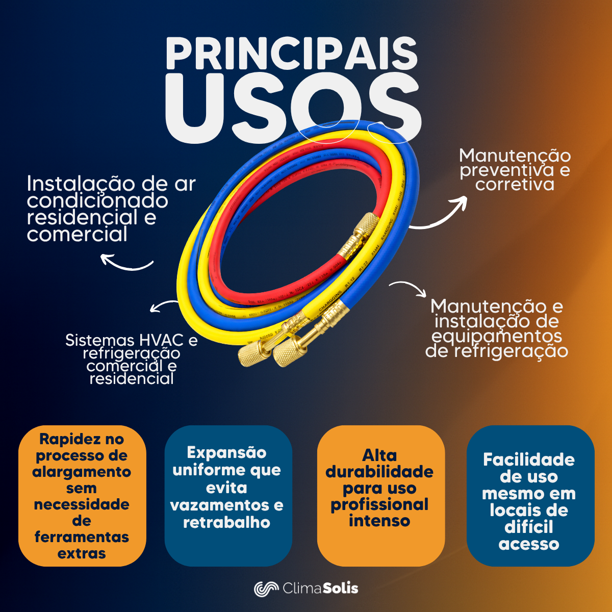 Compatível com manifolds padrão do mercado, o conjunto é indicado tanto para profissionais experientes quanto para quem busca um produto robusto e eficiente para serviços técnicos.