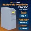 Conteúdo da embalagem: inversor de frequência WEG CFW300B08P2T4NB20 e manual de instruções do fabricante.
