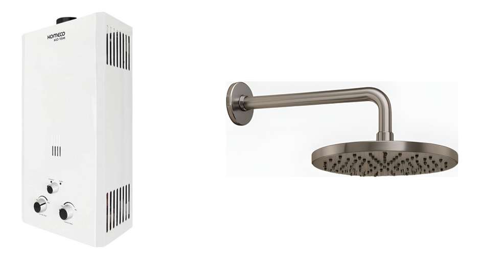 Kit Aquecedor Água Gás 15m Slim GLP A Pilha Komeco + Ducha 22cm Cromada Água Quente Fria
