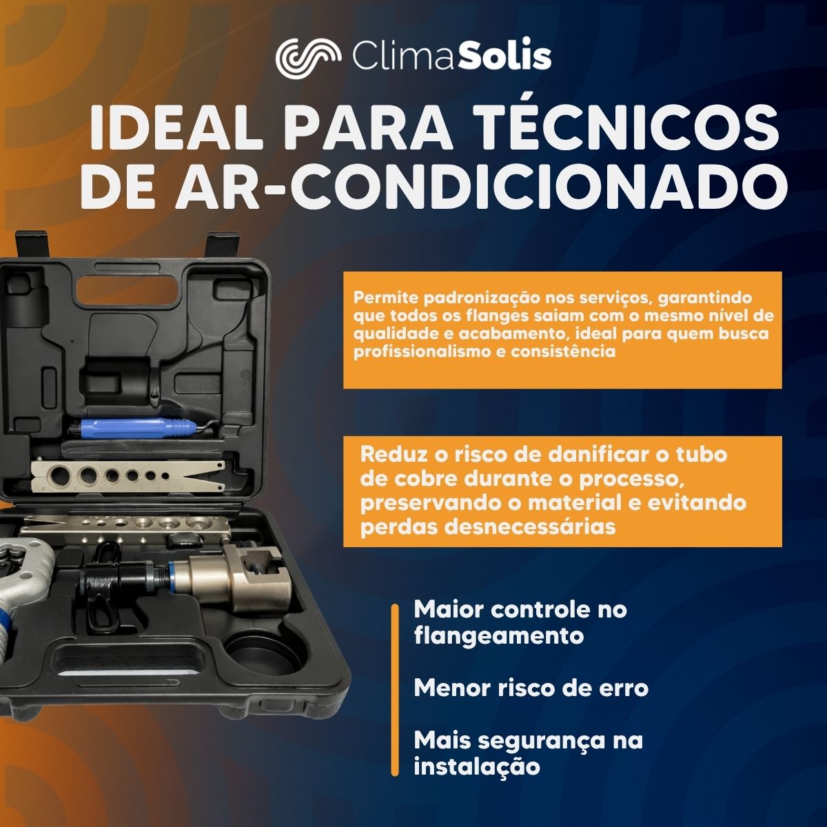 Fabricado com materiais de alta resistência, o kit oferece durabilidade e desempenho profissional, sendo indicado para tubos de cobre utilizados em instalações de ar condicionado, refrigeração e sistemas HVAC em geral.