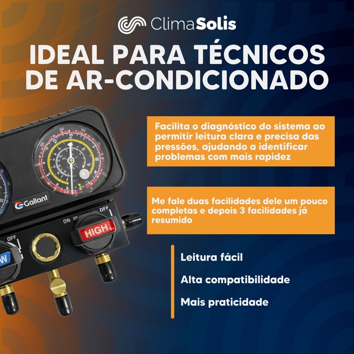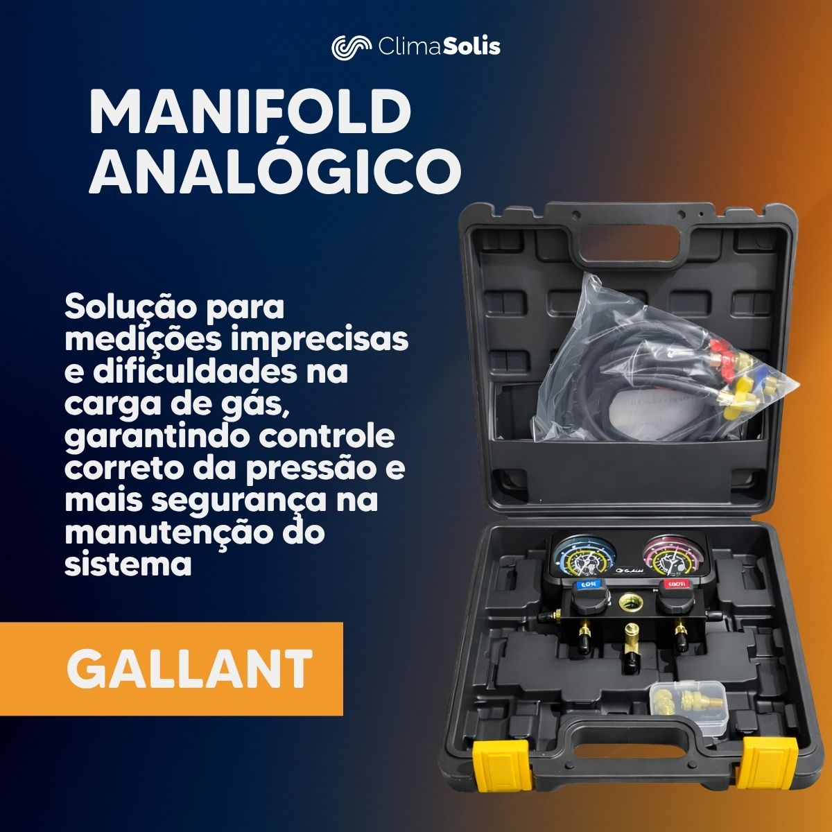 O kit manifold analógico Gallant Pro é a solução ideal para medição e controle de pressão em sistemas de refrigeração e ar condicionado. Indicado para uso profissional, permite realizar diagnósticos precisos, carga de gás e manutenção com mais segurança e eficiência.