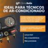 Compatível com os principais gases refrigerantes do mercado, como R32, R410A, R22 e R134a, o equipamento oferece versatilidade para diferentes tipos de serviços. Seu visor analógico de fácil leitura possibilita acompanhamento preciso das pressões, auxiliando na tomada de decisões durante o trabalho.
