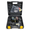 O kit acompanha mangueiras de 1,2 metro que garantem maior alcance e praticidade, além de adaptador que amplia a compatibilidade com diferentes sistemas. Sua construção robusta proporciona durabilidade e resistência, sendo ideal para uso frequente por técnicos e instaladores.