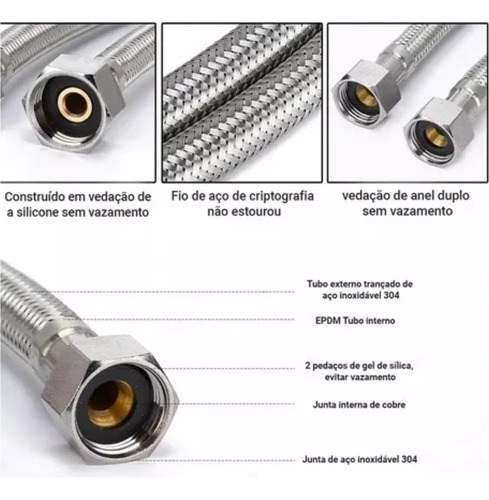 1 Engate Flexível Inox 1” X 60cm