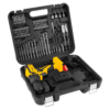 Outro grande diferencial deste kit e que ele acompanha uma maleta completa com 74 pecas entre bits, soquetes, brocas e escareador, além de uma trena de 5 metros totalmente grátis. Isso torna o conjunto muito mais completo e pronto para diversos tipos de trabalho.