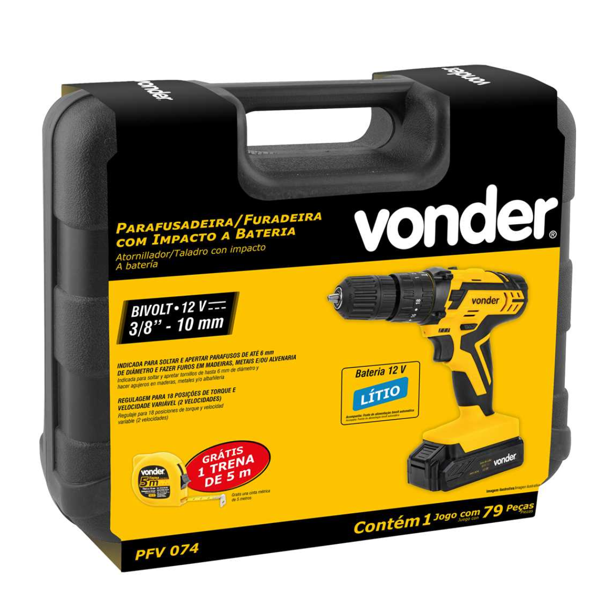 1 Parafusadeira furadeira de impacto a bateria 12 V PFV074 Vonder