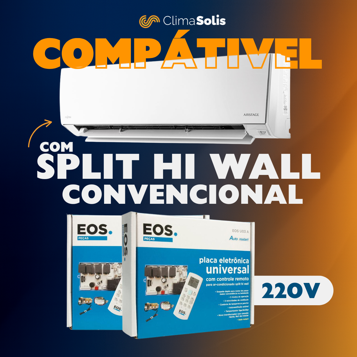 A Placa Eletrônica Universal EOS U03A é a solução prática e confiável para quem precisa substituir a placa de comando do ar-condicionado split hi-wall. Compatível com diversos modelos e marcas (exceto inverter), ela acompanha controle remoto, garantindo praticidade, economia e maior vida útil ao seu equipamento.