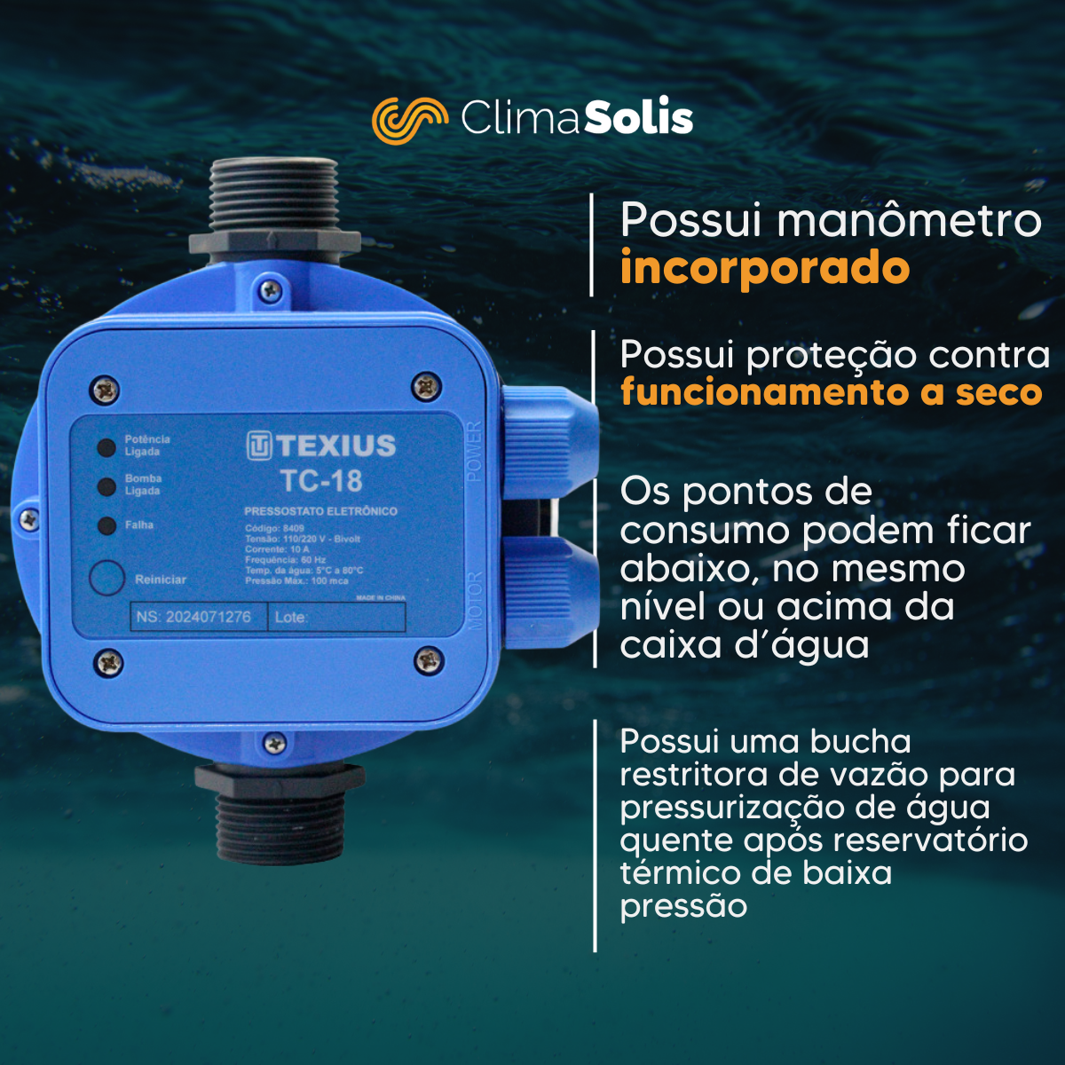 O Pressostato Eletrônico TC-18 Texius é o acessório essencial para quem precisa de conforto, praticidade e segurança no uso de bombas de água.