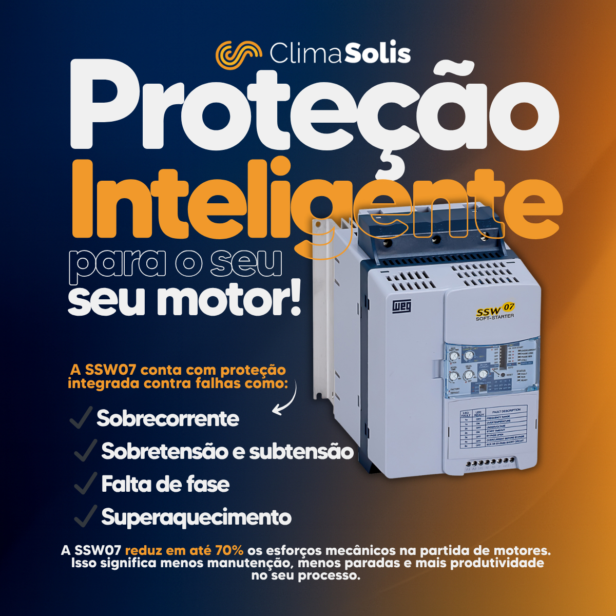 Aplicações indicadas: sistemas de bombeamento, ventiladores, compressores, transportadores, máquinas industriais e demais aplicações que demandem partidas suaves e proteção eficiente.